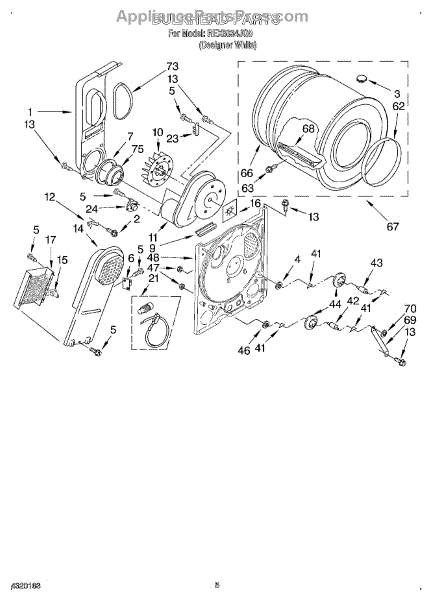 This is a drum assembly intended for use with dryers. This part can be found inside the dryer and is responsible for holding clothing while a cycle is running. It holds wet laundry while loading the appliance. Over time and with use, the drum assembly can start to wear out. This can cause the dryer to squeal, start and stop during a cycle, make buzzing noises, or seize up.If the drum assembly is damaged, it will need to be replaced. Make sure to have basic tools and a pair of work gloves ready. The dryer should be turned off and unplugged from the wall. Raise the top panel, remove the front panel, and then remove the drum. The drum support roller should be taken out and installed on the new drum. Reinstall with the new component and reassemble all parts before use.The drum assembly is made to be used with dryers and washer/dryer combos from Inglis, Estate, Admiral, Crosley, Roper, Magic Chef, Amana, KitchenAid, Maytag, Kenmore, and Whirlpool. It is a genuine OEM replacement part that is sourced directly from the manufacturer. The part is sold on an individual basis.