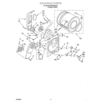 This is a drum assembly intended for use with dryers. This part can be found inside the dryer and is responsible for holding clothing while a cycle is running. It holds wet laundry while loading the appliance. Over time and with use, the drum assembly can start to wear out. This can cause the dryer to squeal, start and stop during a cycle, make buzzing noises, or seize up.If the drum assembly is damaged, it will need to be replaced. Make sure to have basic tools and a pair of work gloves ready. The dryer should be turned off and unplugged from the wall. Raise the top panel, remove the front panel, and then remove the drum. The drum support roller should be taken out and installed on the new drum. Reinstall with the new component and reassemble all parts before use.The drum assembly is made to be used with dryers and washer/dryer combos from Inglis, Estate, Admiral, Crosley, Roper, Magic Chef, Amana, KitchenAid, Maytag, Kenmore, and Whirlpool. It is a genuine OEM replacement part that is sourced directly from the manufacturer. The part is sold on an individual basis.