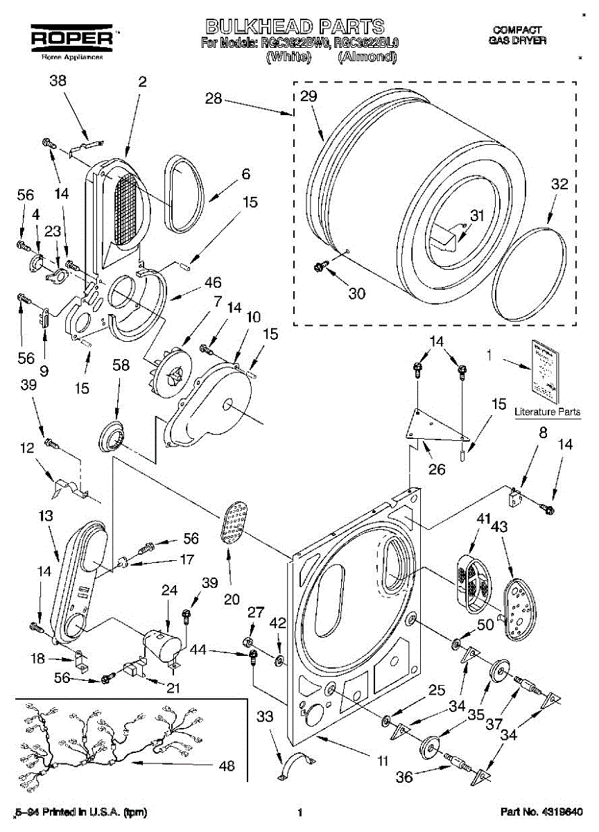 Seals the gap between drum and bulkhead to maintain airflow and quiet operation. Replace when worn to eliminate squealing, reduce lint buildup, and prevent fabric snags. Confirm fit by model number.