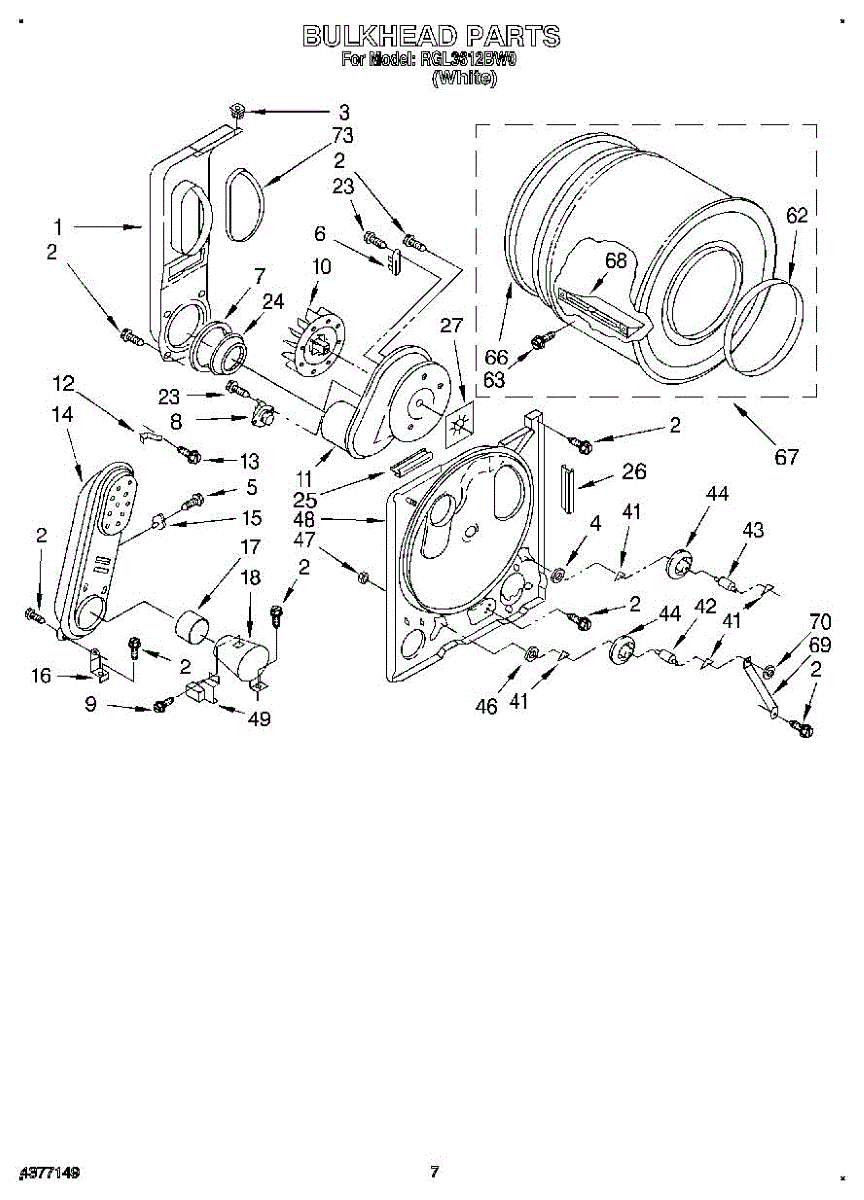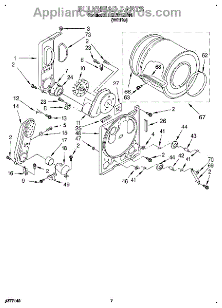 Replacement drum front bulkhead for dryers. Installs at the front of the drum assembly. Needed when original is cracked, damaged, or worn out.