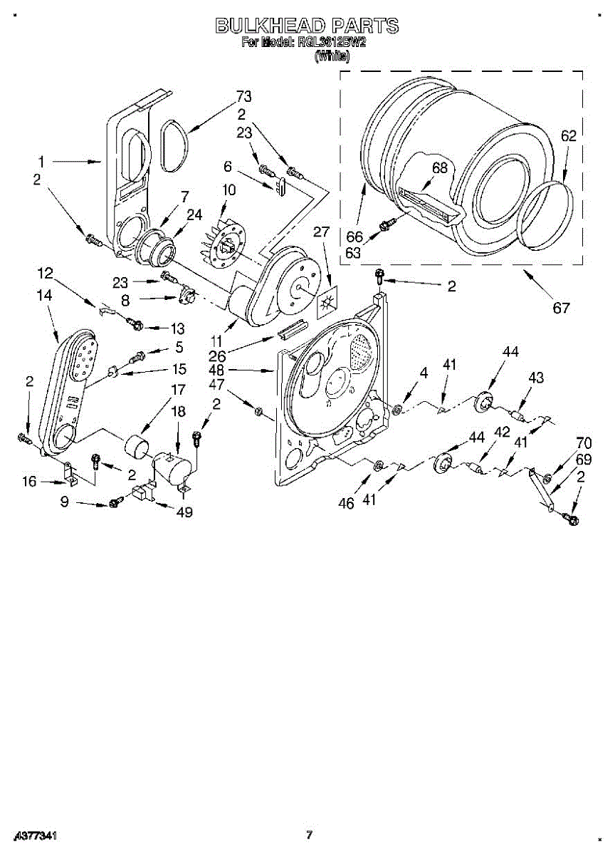 Replacement drum front bulkhead for dryers. Installs at the front of the drum assembly. Needed when original is cracked, damaged, or worn out.