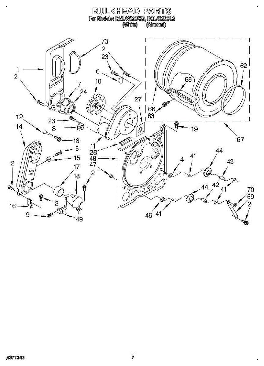 Replacement drum front bulkhead for dryers. Installs at the front of the drum assembly. Needed when original is cracked, damaged, or worn out.
