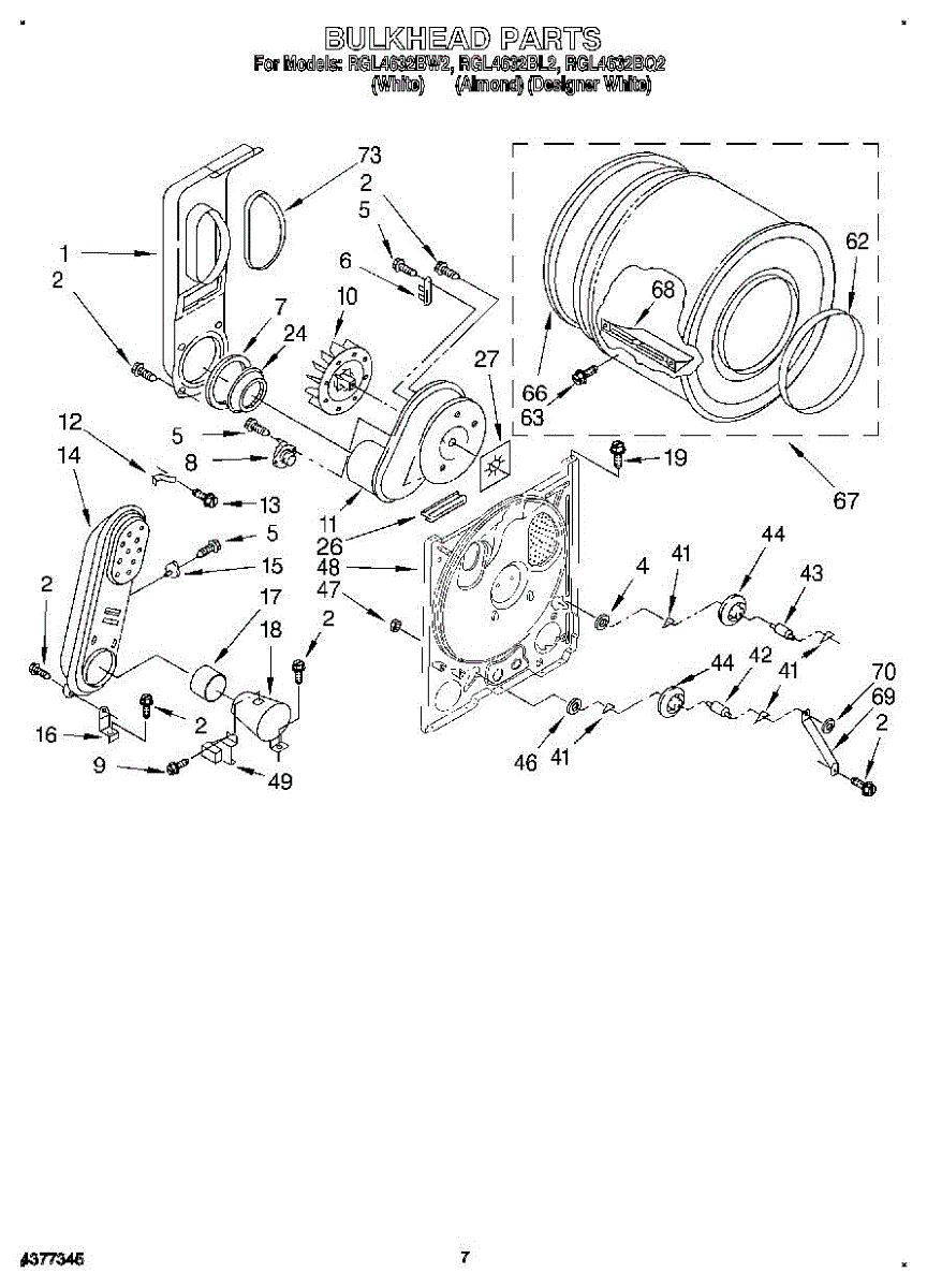 Replacement drum front bulkhead for dryers. Installs at the front of the drum assembly. Needed when original is cracked, damaged, or worn out.