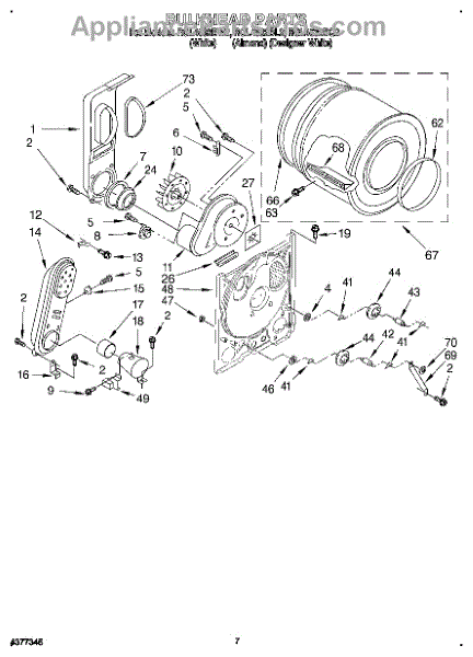 Replacement drum front bulkhead for dryers. Installs at the front of the drum assembly. Needed when original is cracked, damaged, or worn out.