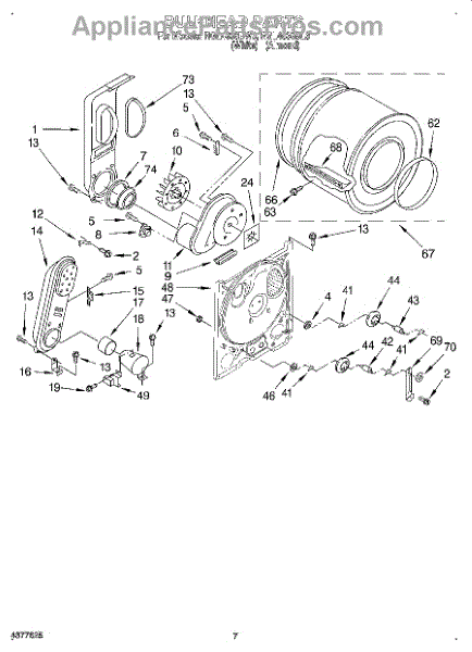 This is a drum assembly intended for use with dryers. This part can be found inside the dryer and is responsible for holding clothing while a cycle is running. It holds wet laundry while loading the appliance. Over time and with use, the drum assembly can start to wear out. This can cause the dryer to squeal, start and stop during a cycle, make buzzing noises, or seize up.If the drum assembly is damaged, it will need to be replaced. Make sure to have basic tools and a pair of work gloves ready. The dryer should be turned off and unplugged from the wall. Raise the top panel, remove the front panel, and then remove the drum. The drum support roller should be taken out and installed on the new drum. Reinstall with the new component and reassemble all parts before use.The drum assembly is made to be used with dryers and washer/dryer combos from Inglis, Estate, Admiral, Crosley, Roper, Magic Chef, Amana, KitchenAid, Maytag, Kenmore, and Whirlpool. It is a genuine OEM replacement part that is sourced directly from the manufacturer. The part is sold on an individual basis.