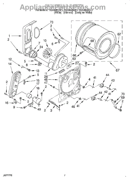 Complete drum assembly for dryers. Houses and rotates laundry during cycles. Replace if cracked, warped, damaged, or worn from extended use.