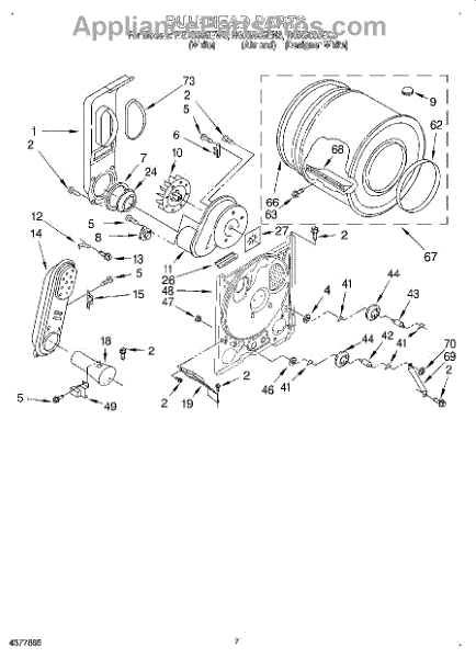 This is a drum assembly intended for use with dryers. This part can be found inside the dryer and is responsible for holding clothing while a cycle is running. It holds wet laundry while loading the appliance. Over time and with use, the drum assembly can start to wear out. This can cause the dryer to squeal, start and stop during a cycle, make buzzing noises, or seize up.If the drum assembly is damaged, it will need to be replaced. Make sure to have basic tools and a pair of work gloves ready. The dryer should be turned off and unplugged from the wall. Raise the top panel, remove the front panel, and then remove the drum. The drum support roller should be taken out and installed on the new drum. Reinstall with the new component and reassemble all parts before use.The drum assembly is made to be used with dryers and washer/dryer combos from Inglis, Estate, Admiral, Crosley, Roper, Magic Chef, Amana, KitchenAid, Maytag, Kenmore, and Whirlpool. It is a genuine OEM replacement part that is sourced directly from the manufacturer. The part is sold on an individual basis.