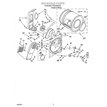 This blower housing assembly directs airflow from the dryer's drum to the exhaust, helping the appliance vent properly for efficient drying. It replaces a damaged or cracked housing to restore correct air path and reduce airflow loss. What it does: