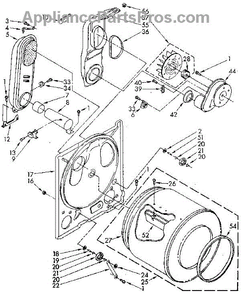 Replacement drum front bulkhead for dryers. Installs at the front of the drum assembly. Needed when original is cracked, damaged, or worn out.