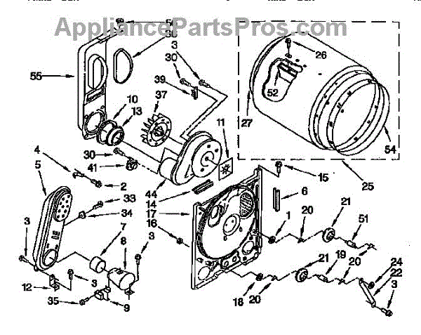 Supports the front drum edge for smooth, quiet rotation. Replace when worn to stop scraping noises or drum wobble. Confirm fit with your model number.