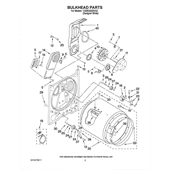 Seals the rear drum edge to contain hot air and improve drying efficiency. Replace if worn, torn, or causing noise. Confirm fit with your model number.
