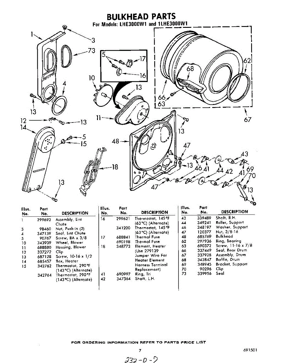 Parts for Whirlpool 1LHE3000W1: 07 - Bulkhead Parts