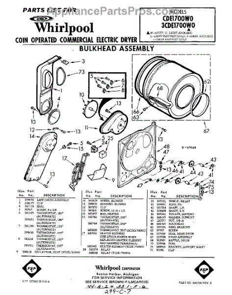 Parts for Whirlpool 3CDE1700W0: 01 - Bulkhead Parts