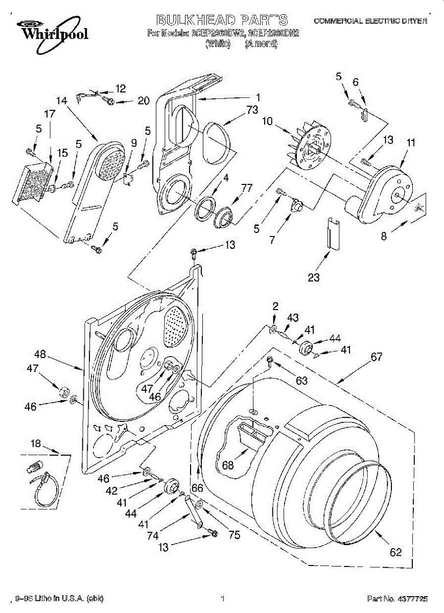 Replacement drum front bulkhead for dryers. Installs at the front of the drum assembly. Needed when original is cracked, damaged, or worn out.