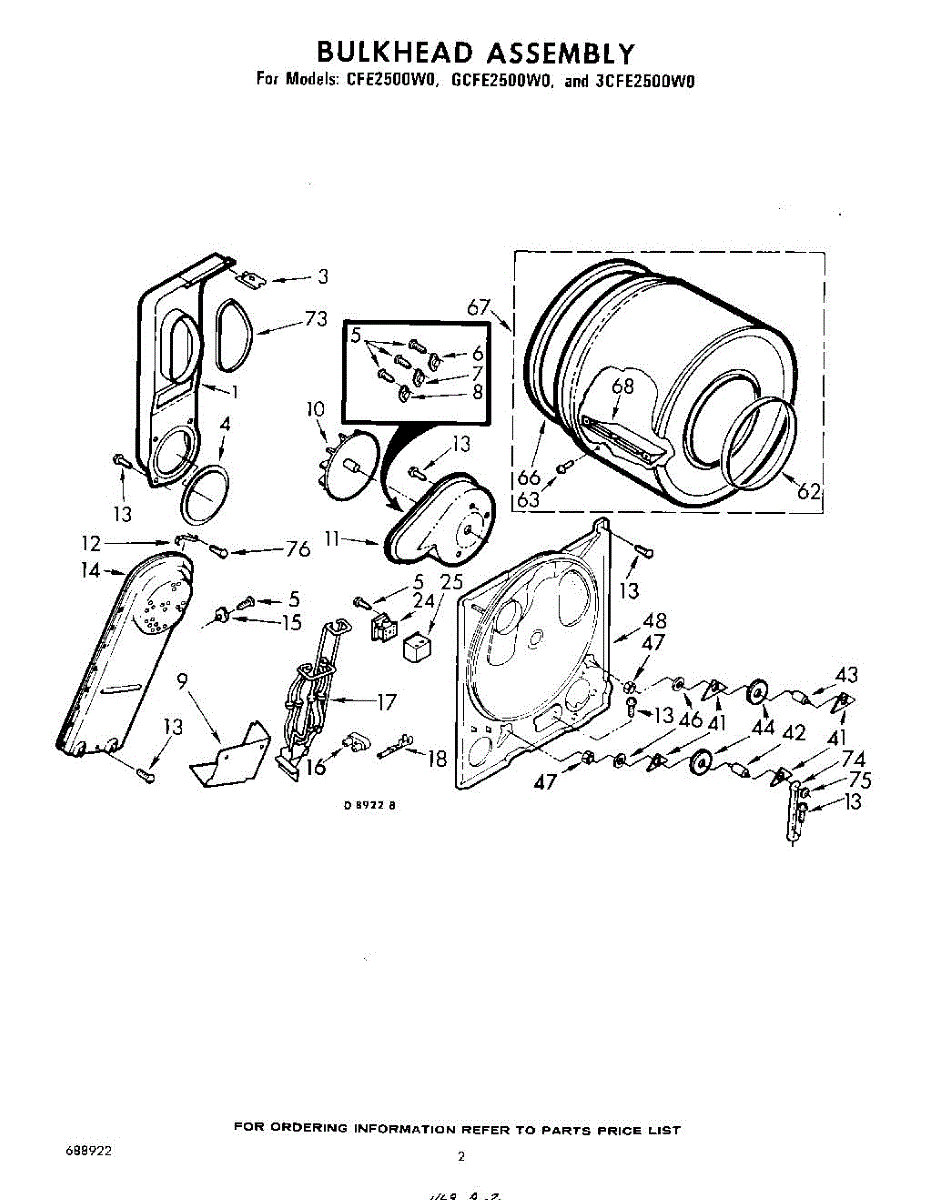 Parts for Whirlpool 3CFE2500W0: 02 - Bulkhead Parts