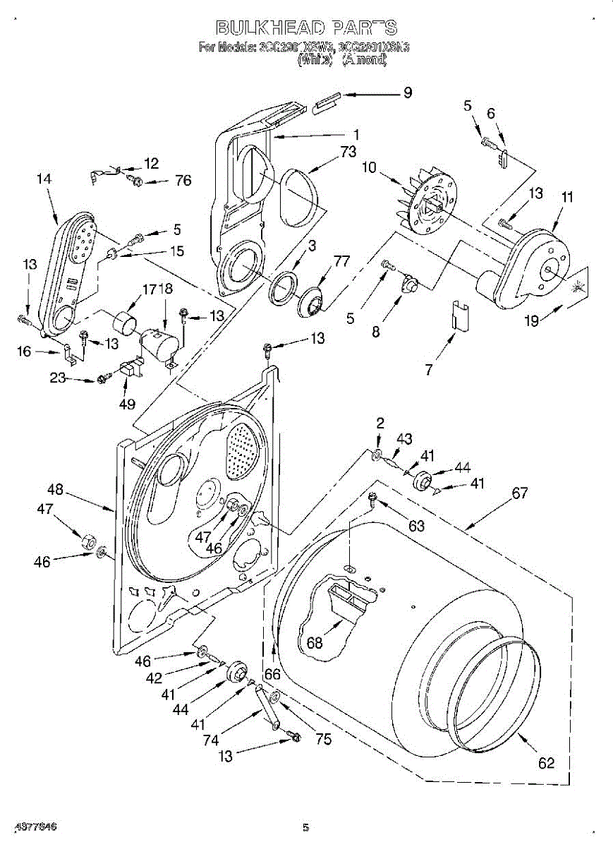 Replacement drum front bulkhead for dryers. Installs at the front of the drum assembly. Needed when original is cracked, damaged, or worn out.