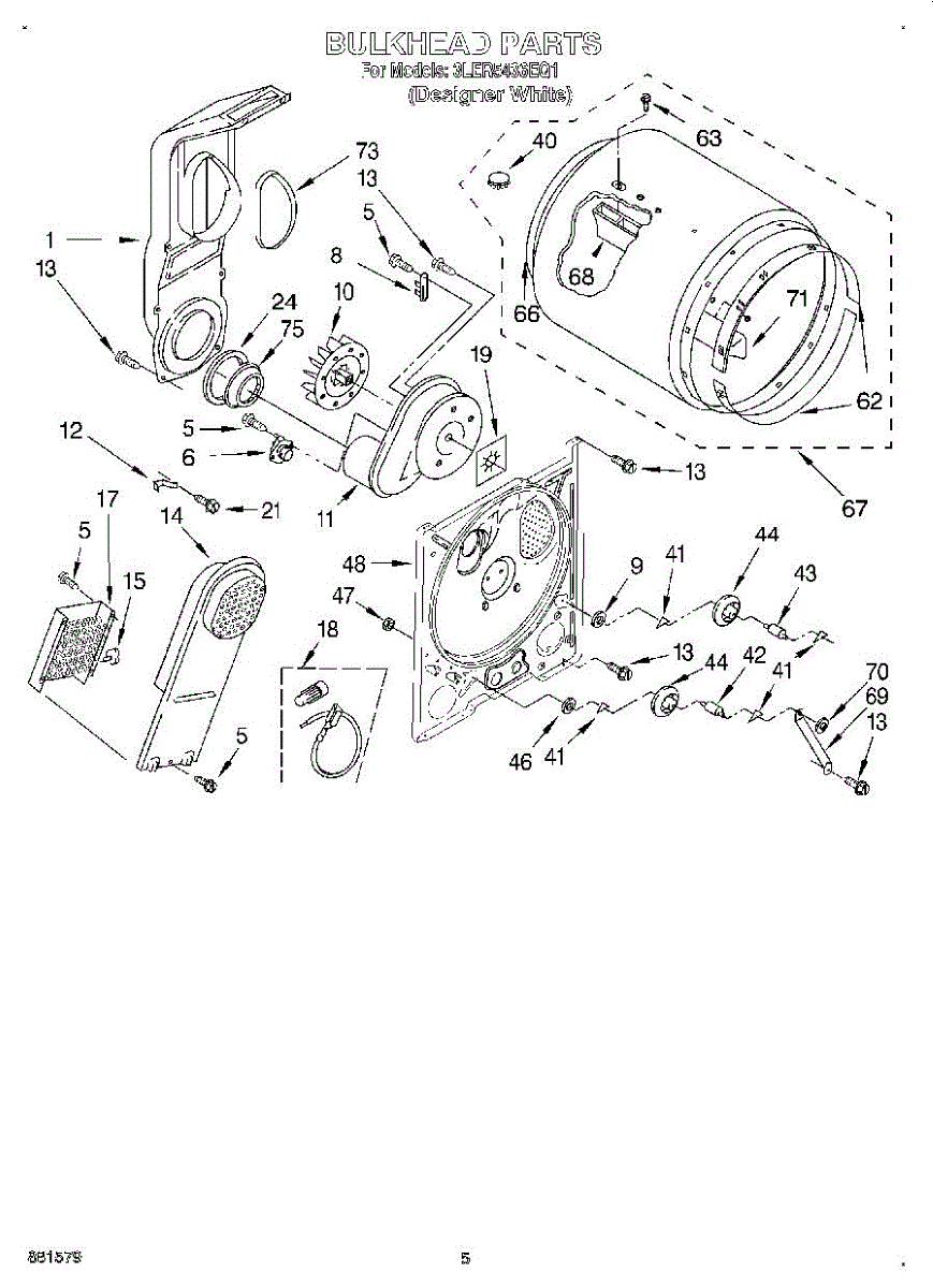 This bulkhead is the front tub housing that supports the washer drum and seals the washer cabinet to help contain water. Replaces a cracked or corroded housing to restore proper drum alignment and help prevent leaks. What it does: