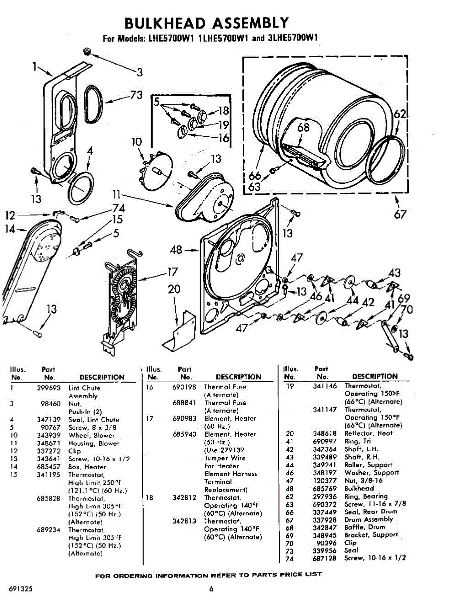Parts for Whirlpool 3LHE5700W1: 06 - Bulkhead Parts