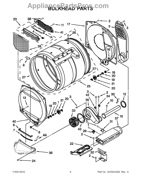 This bulkhead is the front interior panel that supports the drum and helps direct dryer airflow for efficient tumbling and exhaust. It restores proper drum alignment and airflow when the original panel is worn or damaged. What it does: