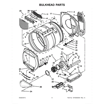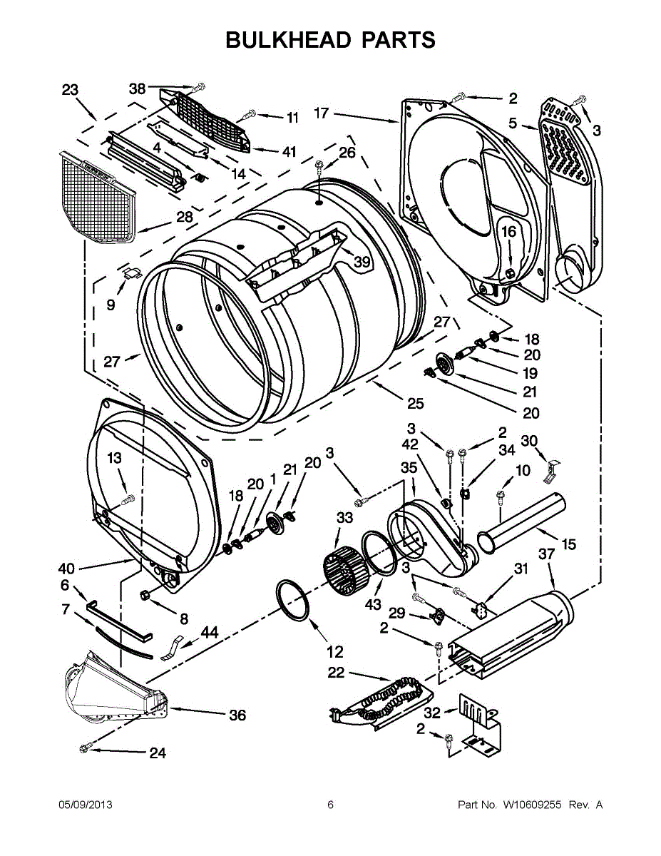 This front drum bulkhead is the stationary front panel that supports the dryer drum and seals the drum opening to maintain proper airflow and drum alignment for reliable drying performance. What it does: