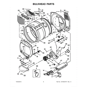 This front drum bulkhead is the stationary front panel that supports the dryer drum and seals the drum opening to maintain proper airflow and drum alignment for reliable drying performance. What it does:
