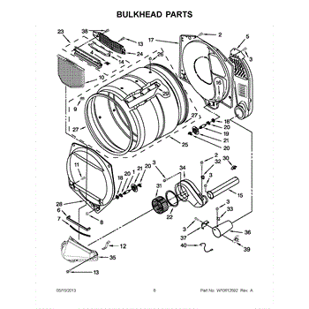 This bulkhead is the front interior panel that supports the drum and helps direct dryer airflow for efficient tumbling and exhaust. It restores proper drum alignment and airflow when the original panel is worn or damaged. What it does: