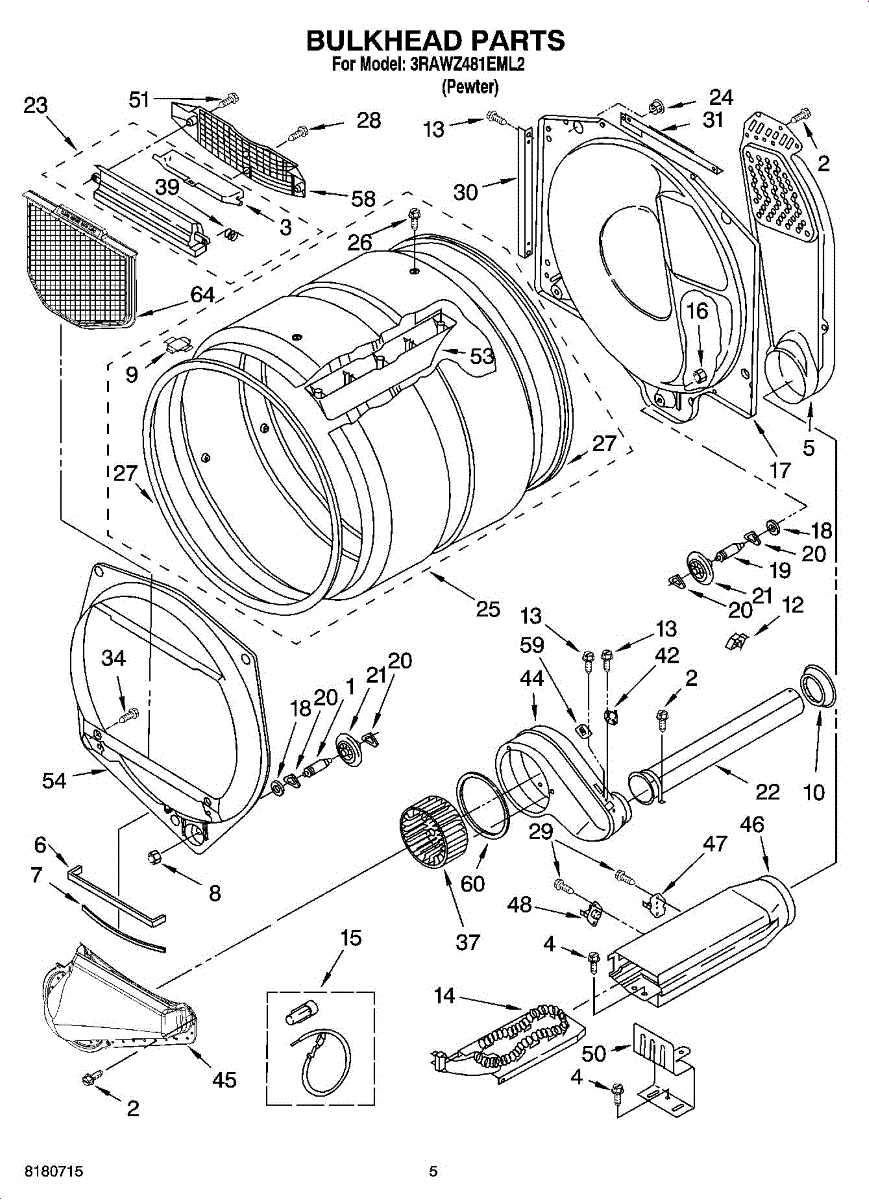 Seals the drum perimeter to prevent abrasion and maintain temperature. Replace when worn, torn, or causing marks on clothes. Verify fit by model number.