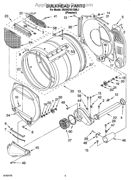 This bulkhead is the front interior panel that supports the drum and helps direct dryer airflow for efficient tumbling and exhaust. It restores proper drum alignment and airflow when the original panel is worn or damaged. What it does:
