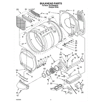 This bulkhead is the front interior panel that supports the drum and helps direct dryer airflow for efficient tumbling and exhaust. It restores proper drum alignment and airflow when the original panel is worn or damaged. What it does: