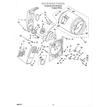 This bulkhead is the front tub housing that supports the washer drum and seals the washer cabinet to help contain water. Replaces a cracked or corroded housing to restore proper drum alignment and help prevent leaks. What it does: