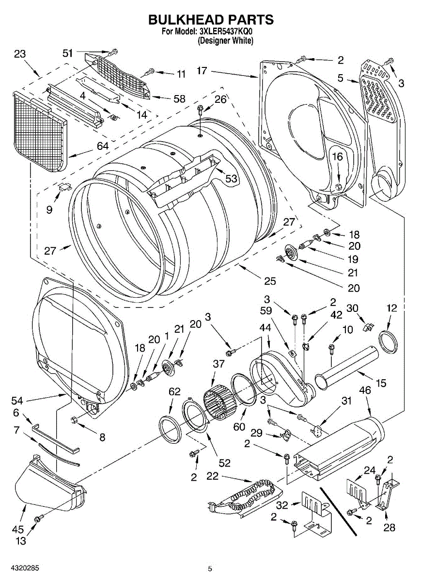 This front drum bulkhead is the stationary front panel that supports the dryer drum and seals the drum opening to maintain proper airflow and drum alignment for reliable drying performance. What it does: