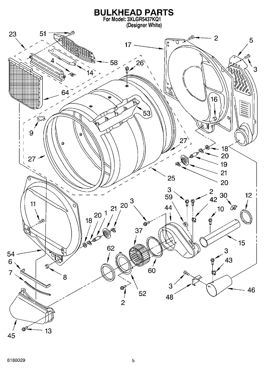 This front drum bulkhead is the stationary front panel that supports the dryer drum and seals the drum opening to maintain proper airflow and drum alignment for reliable drying performance. What it does: