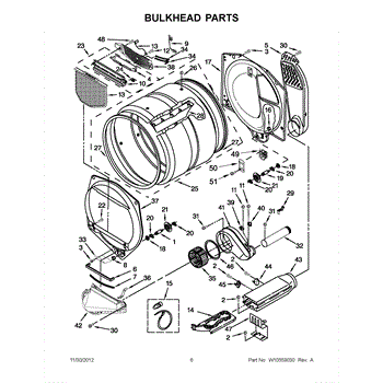 This front drum bulkhead is the stationary front panel that supports the dryer drum and seals the drum opening to maintain proper airflow and drum alignment for reliable drying performance. What it does:
