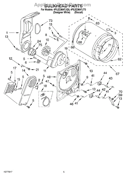 Replaces a cracked, dented, or damaged dryer drum bulkhead. This front drum component restores smooth tumbling action when the original is worn or broken.