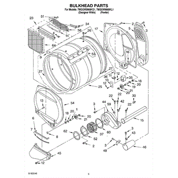This front drum bulkhead is the stationary front panel that supports the dryer drum and seals the drum opening to maintain proper airflow and drum alignment for reliable drying performance. What it does: