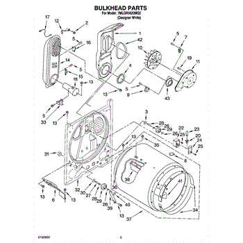 This bulkhead is the structural panel that supports and seals the washer tub and provides mounting points for related components. It restores proper alignment and containment so the washer can hold and drain water correctly. What it does: