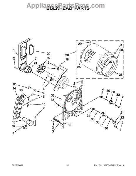 This bulkhead is the front tub housing that supports the washer drum and seals the washer cabinet to help contain water. Replaces a cracked or corroded housing to restore proper drum alignment and help prevent leaks. What it does: