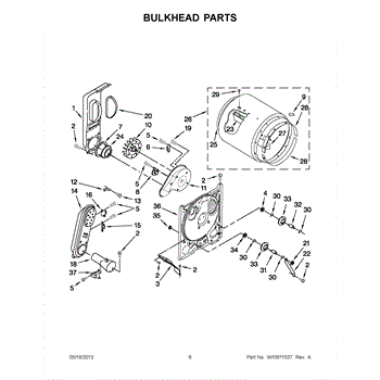 This bulkhead is the front tub housing that supports the washer drum and seals the washer cabinet to help contain water. Replaces a cracked or corroded housing to restore proper drum alignment and help prevent leaks. What it does:
