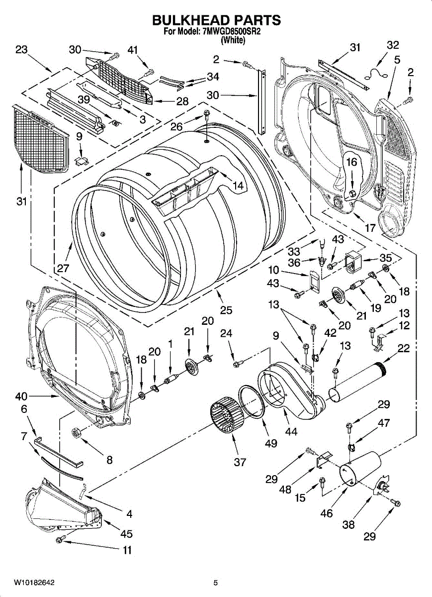 Replaces the front bulkhead section of your dryer drum. Needed when the drum front is cracked, dented, warped, or damaged, affecting tumbling performance.