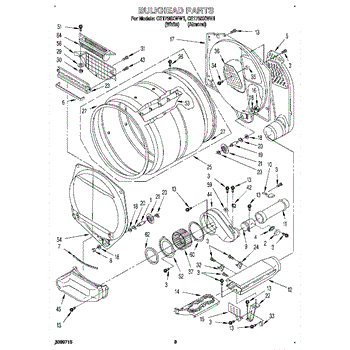 This bulkhead is the front interior panel that supports the drum and helps direct dryer airflow for efficient tumbling and exhaust. It restores proper drum alignment and airflow when the original panel is worn or damaged. What it does: