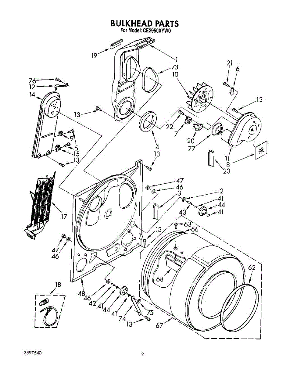 Replacement drum front bulkhead for dryers. Installs at the front of the drum assembly. Needed when original is cracked, damaged, or worn out.