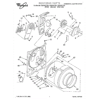 Replacement drum front bulkhead for dryers. Installs at the front of the drum assembly. Needed when original is cracked, damaged, or worn out.