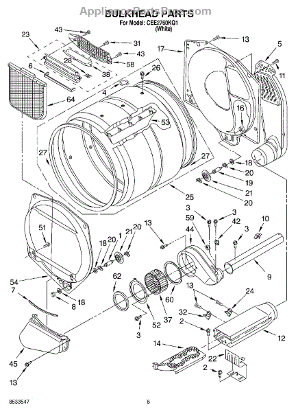 This is a drum assembly used in many home dryers. The component is located inside the appliance and is tasked with holding the clothing during a dryer cycle. It is made of durable materials but can experience wear and tear or damage that cause it to malfunction. If the drum assembly is worn or damaged, it may cause the appliance to buzz or squeal, start and stop, and seize up during use.If the drum assembly is damaged or worn, it will need to be replaced. This will require a set of tools and a pair of work gloves. Before starting the replacement process, make sure the dryer is unplugged from the wall. The dryer will need to be disassembled to access the drum assembly. The belt can be used to pull out the drum so the new component can be installed. Replace the part and reassemble the dryer. It should be plugged back in before use.This part is sold on an individual basis. It is designed to be used with several dryers created by Admiral, Amana, Maytag, Kenmore, and Whirlpool. The drum assembly is an authentic OEM replacement part that is sourced directly from the manufacturer.