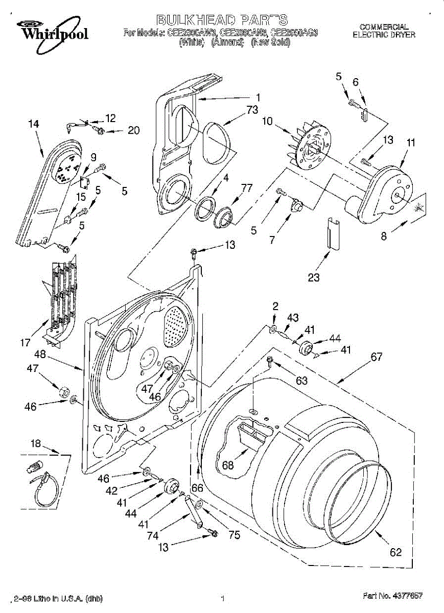 Replacement drum front bulkhead for dryers. Installs at the front of the drum assembly. Needed when original is cracked, damaged, or worn out.