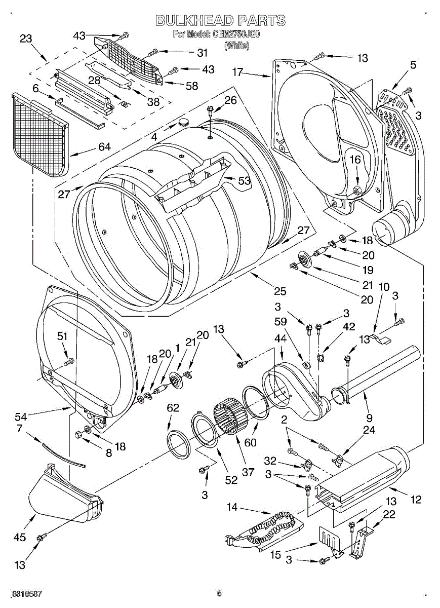 This front drum bulkhead is the stationary front panel that supports the dryer drum and seals the drum opening to maintain proper airflow and drum alignment for reliable drying performance. What it does: