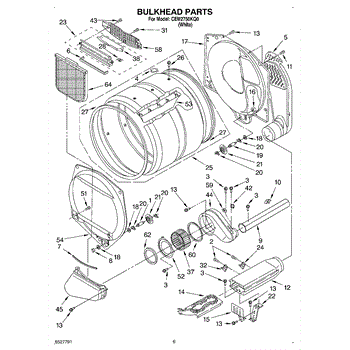 This front drum bulkhead is the stationary front panel that supports the dryer drum and seals the drum opening to maintain proper airflow and drum alignment for reliable drying performance. What it does: