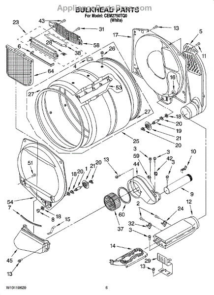 This bulkhead is the front interior panel that supports the drum and helps direct dryer airflow for efficient tumbling and exhaust. It restores proper drum alignment and airflow when the original panel is worn or damaged. What it does: