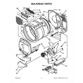 This bulkhead is the front interior panel that supports the drum and helps direct dryer airflow for efficient tumbling and exhaust. It restores proper drum alignment and airflow when the original panel is worn or damaged. What it does:
