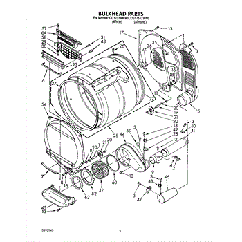 This front drum bulkhead is the stationary front panel that supports the dryer drum and seals the drum opening to maintain proper airflow and drum alignment for reliable drying performance. What it does: