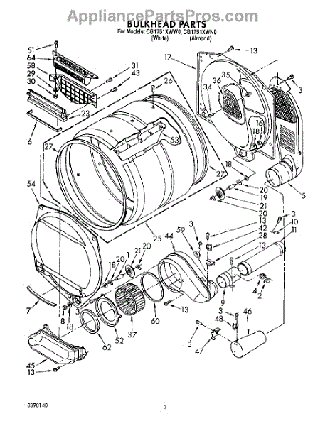 This bulkhead is the front interior panel that supports the drum and helps direct dryer airflow for efficient tumbling and exhaust. It restores proper drum alignment and airflow when the original panel is worn or damaged. What it does: